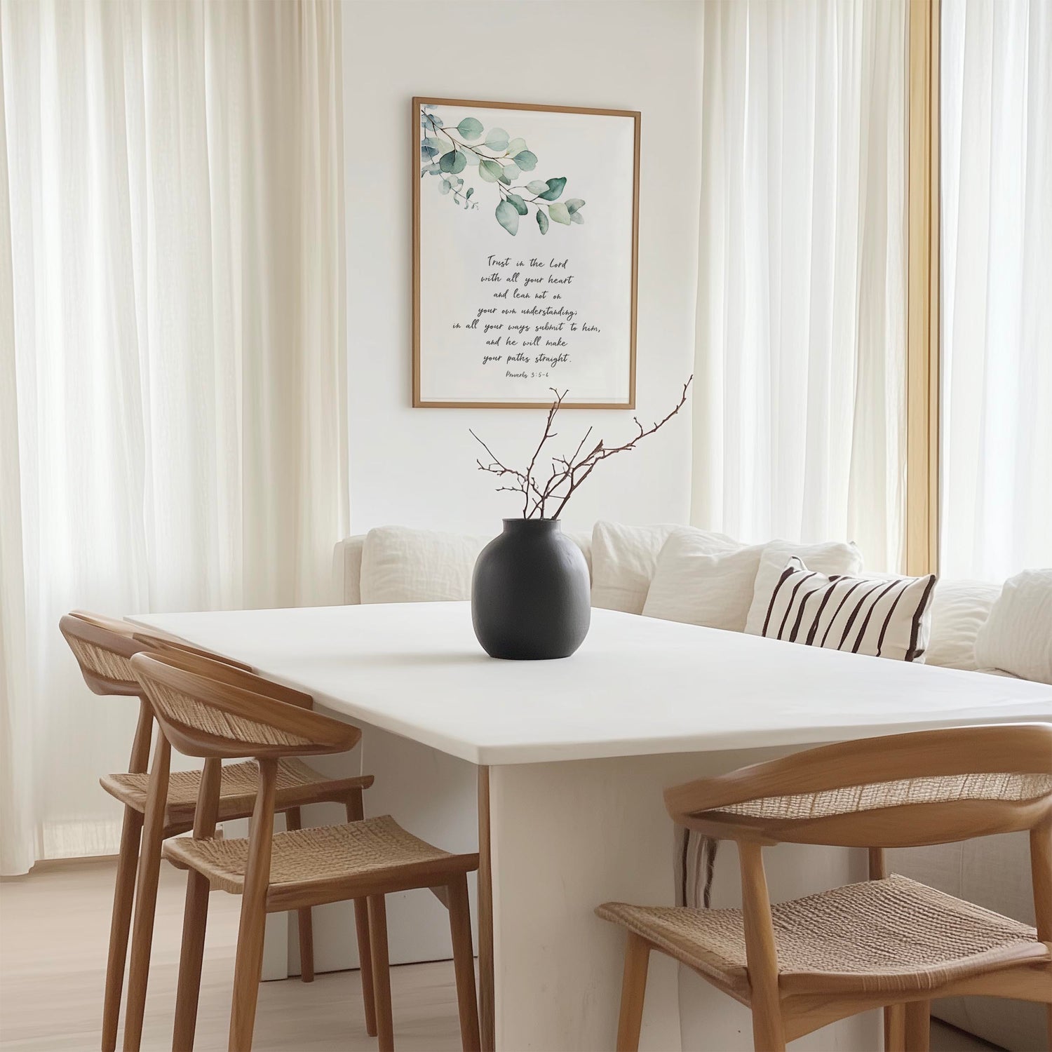Transform any corner into a haven of inspiration and serenity with our Proverbs 3:5-6 Bible verse print. Designed to resonate with those seeking comfort and spiritual guidance, it's a perfect addition to your home or a cherished gift for someone dear.