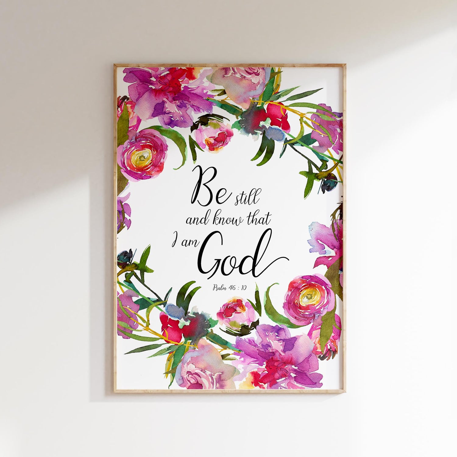Be Still and Know Floral Christian Wall Art, Psalm 46 10 Poster Gift