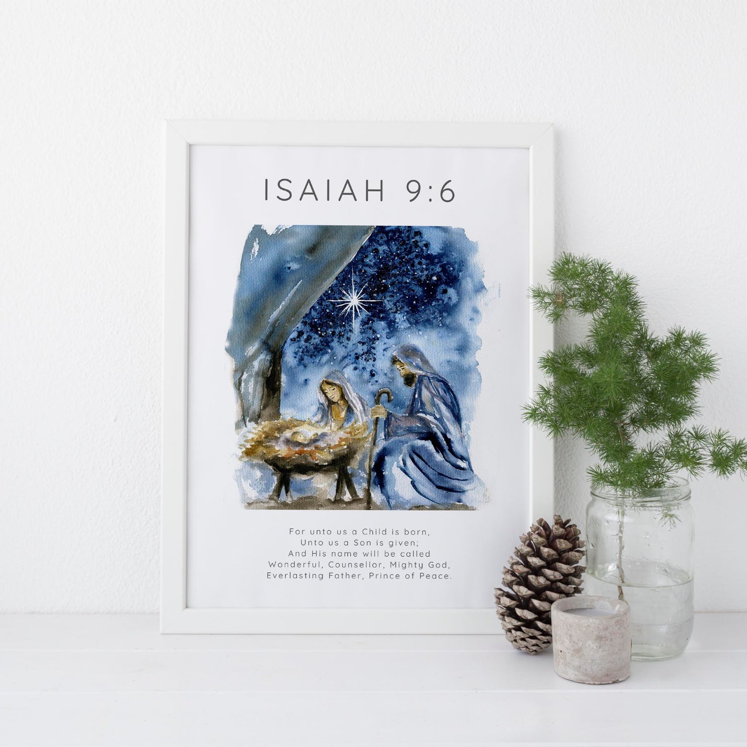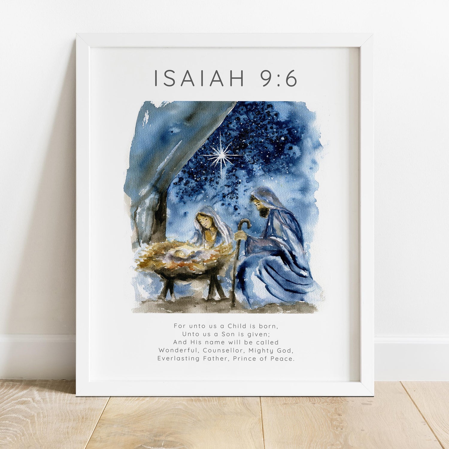 - An UNFRAMED Isaiah 9:6 Christmas Wall Art Watercolour Nativity Bible Verse Print