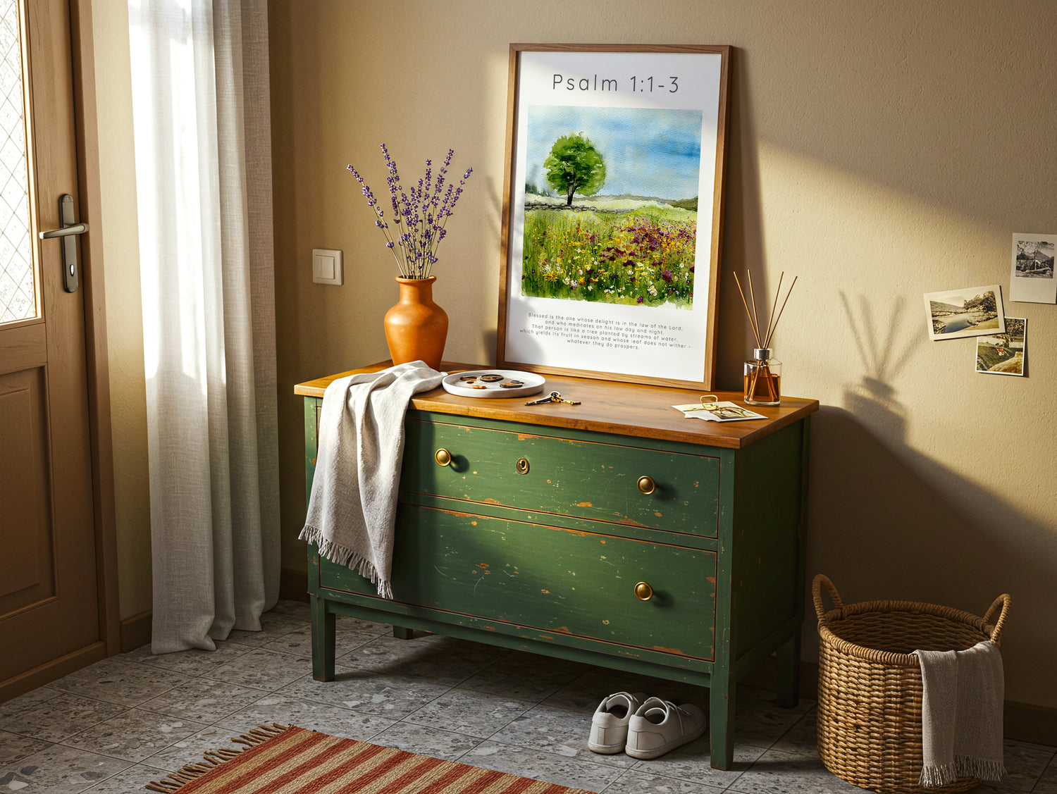 With soft, nature-inspired tones and a design that reflects serenity and strength, this print makes a meaningful addition to a living room, hallway, prayer space, or bedroom. It’s a lovely reminder of how steadfast our faith can be when we draw close to God — nourished, steady, and full of quiet joy.