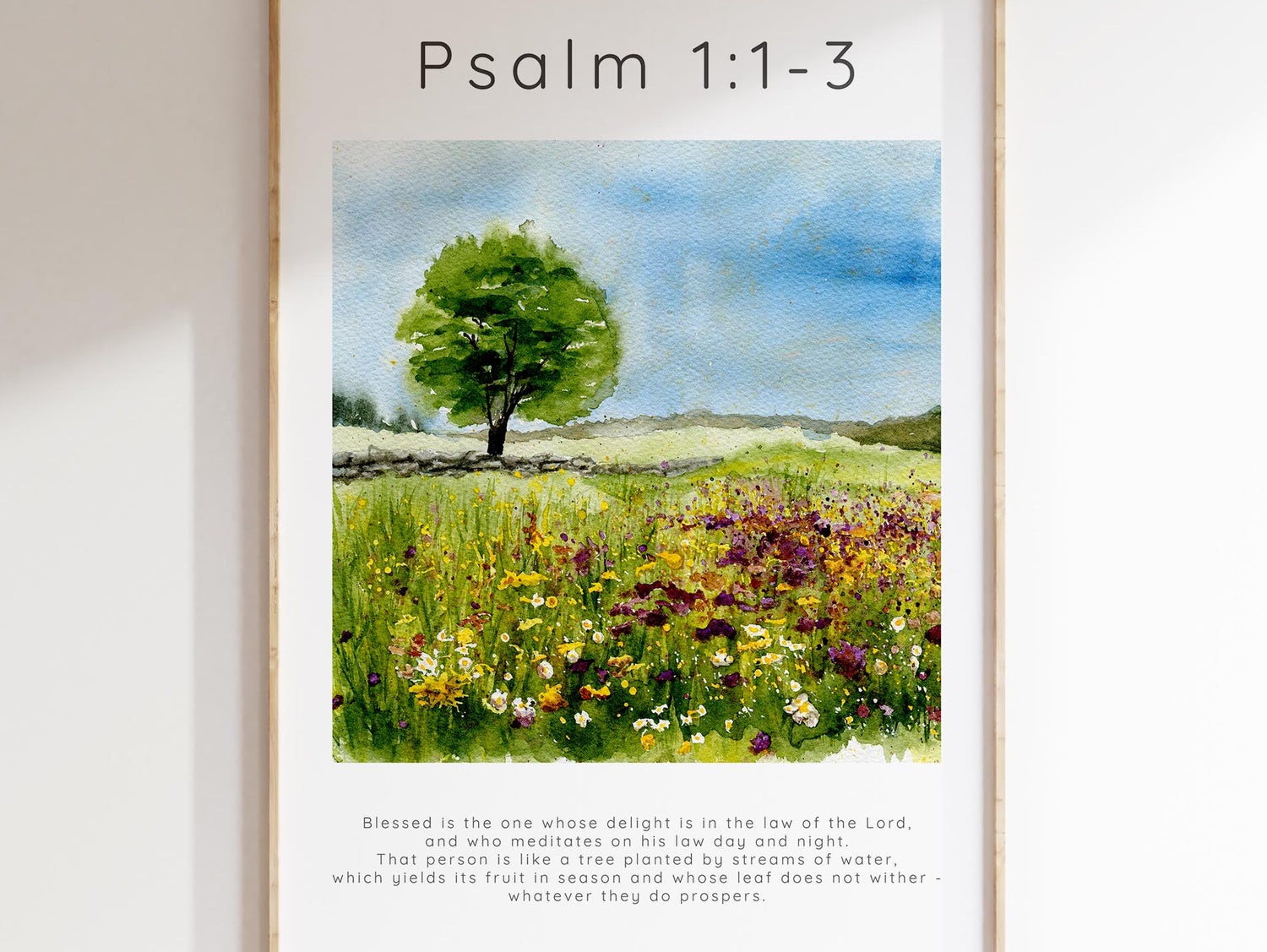 Blessed is the One Christian Wall Art, Psalm 1:1-3 Bible Verse Print, Tree by Streams of Water Scripture Artwork, Faith Home Decor Gift