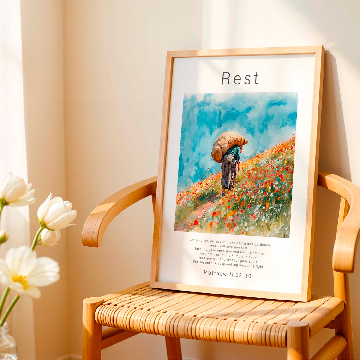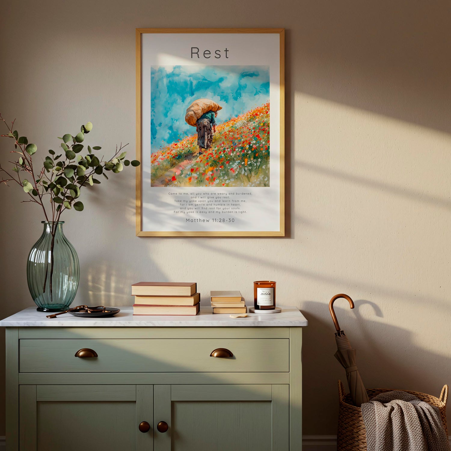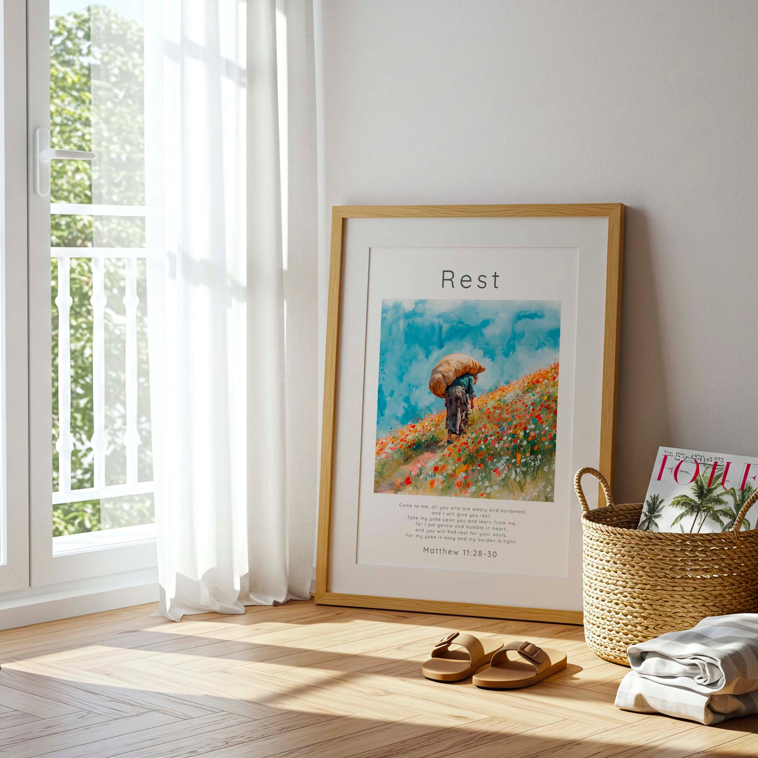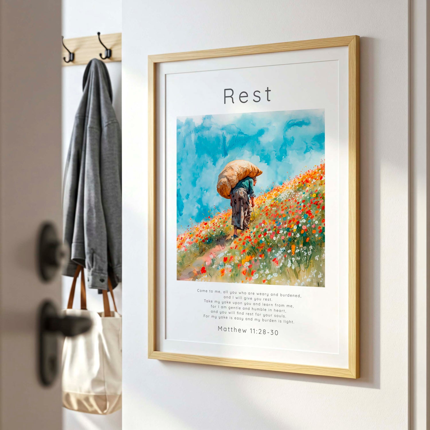 Come To Me And I Will Give You Rest Christian Wall Art Print - Matthew 11:28-30 is one of those passages that lands differently depending on where you are in life. When you're tired, weary, carrying more than feels manageable, these words from Jesus become incredibly personal: "Come to me, all you who are weary and burdened, and I will give you rest."