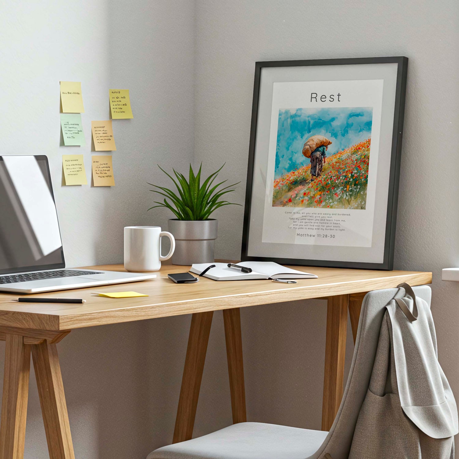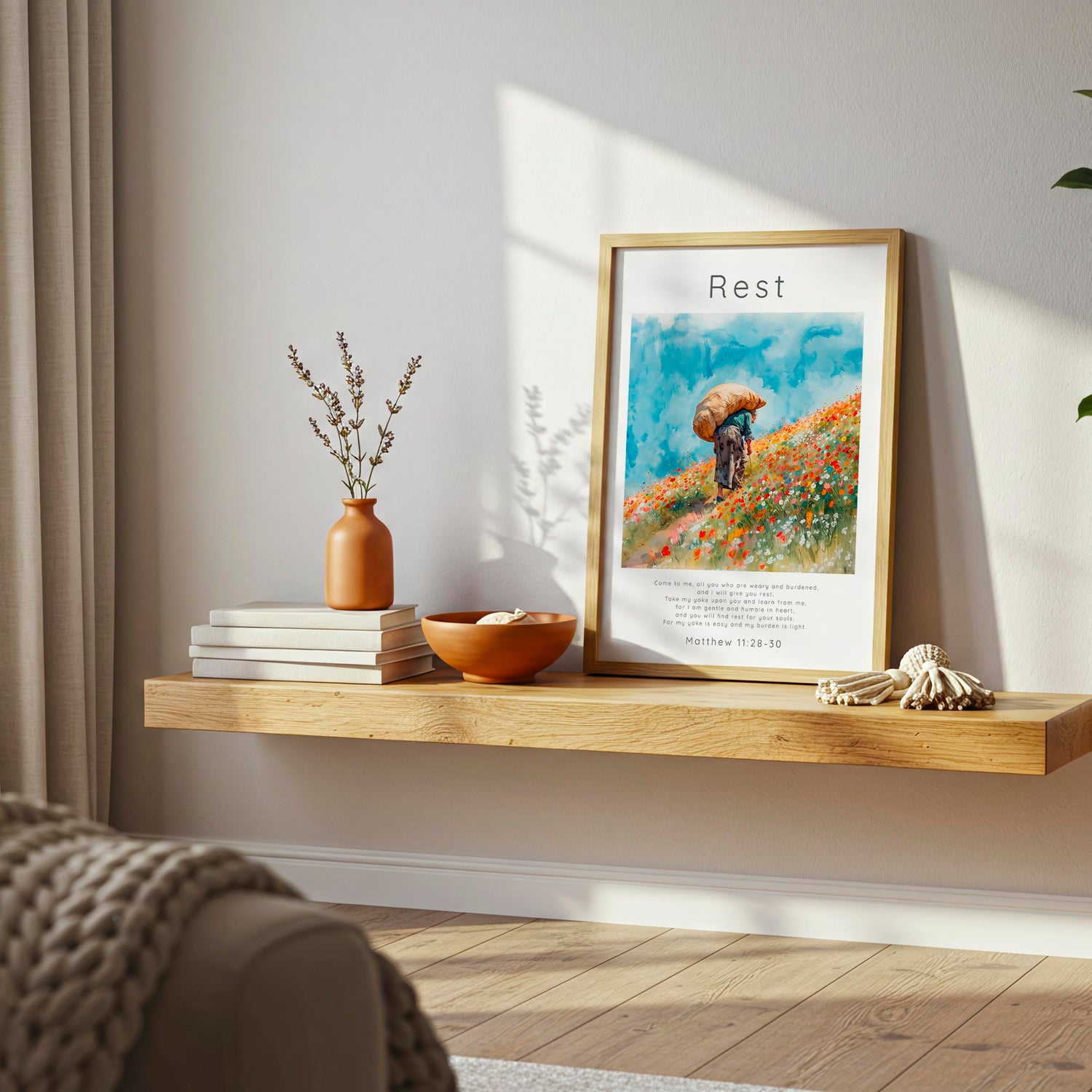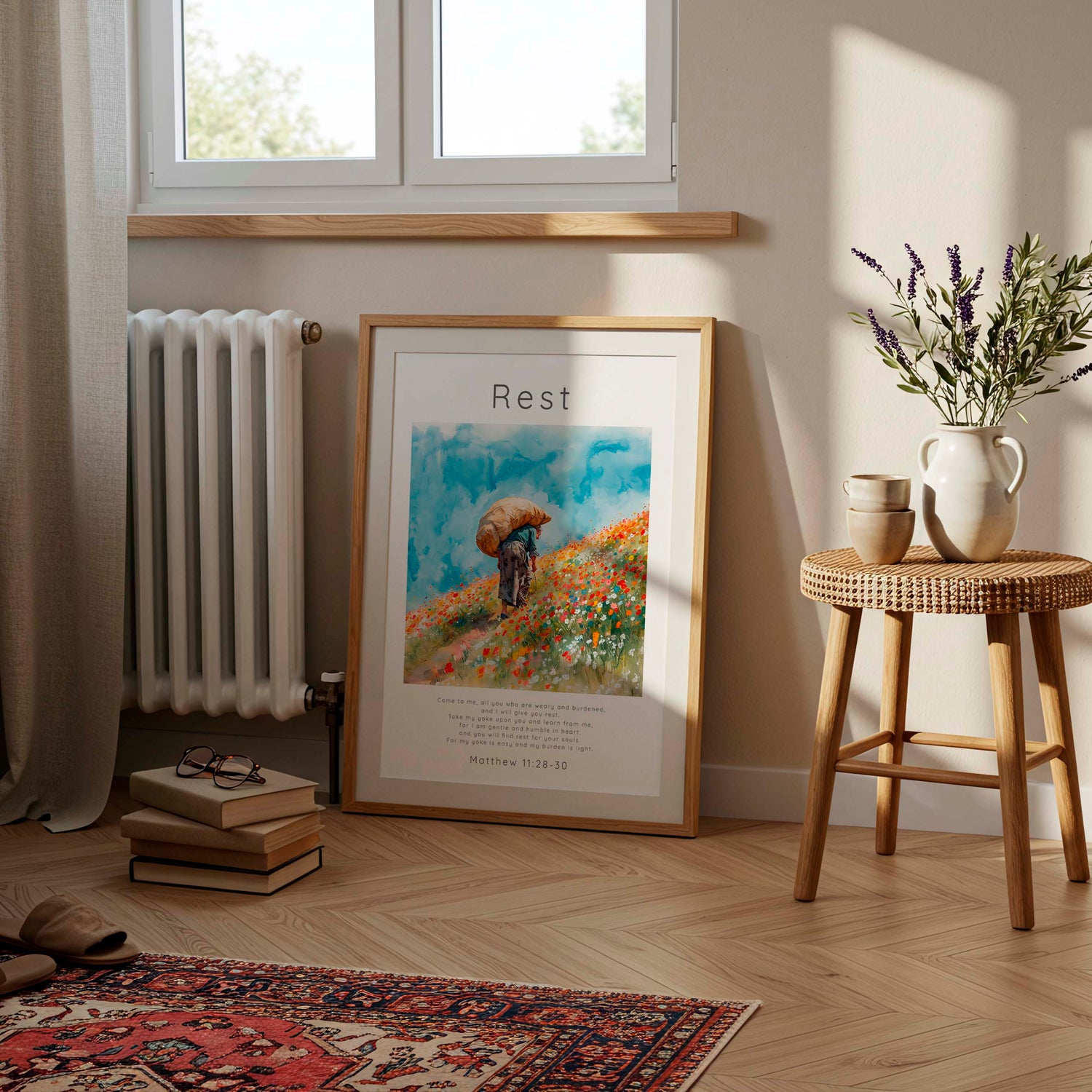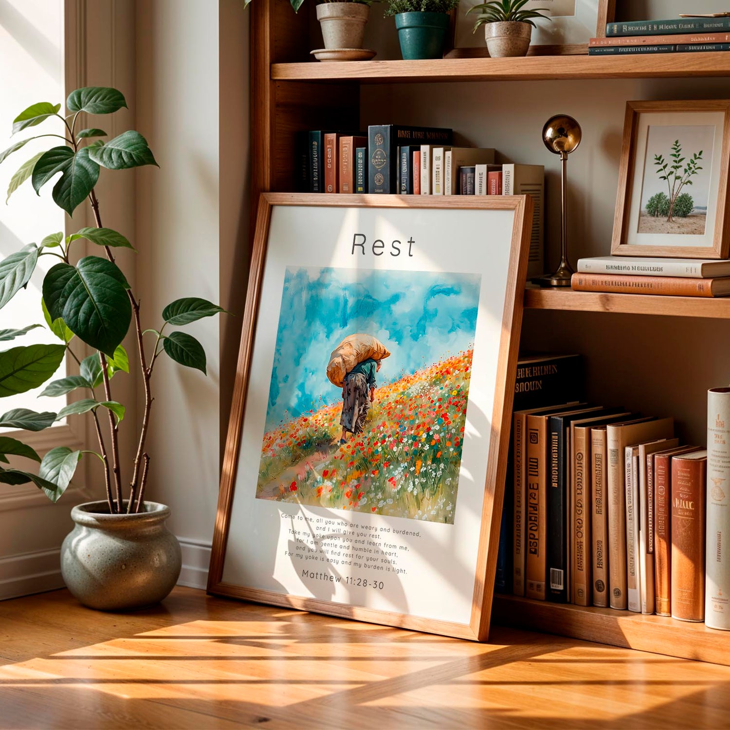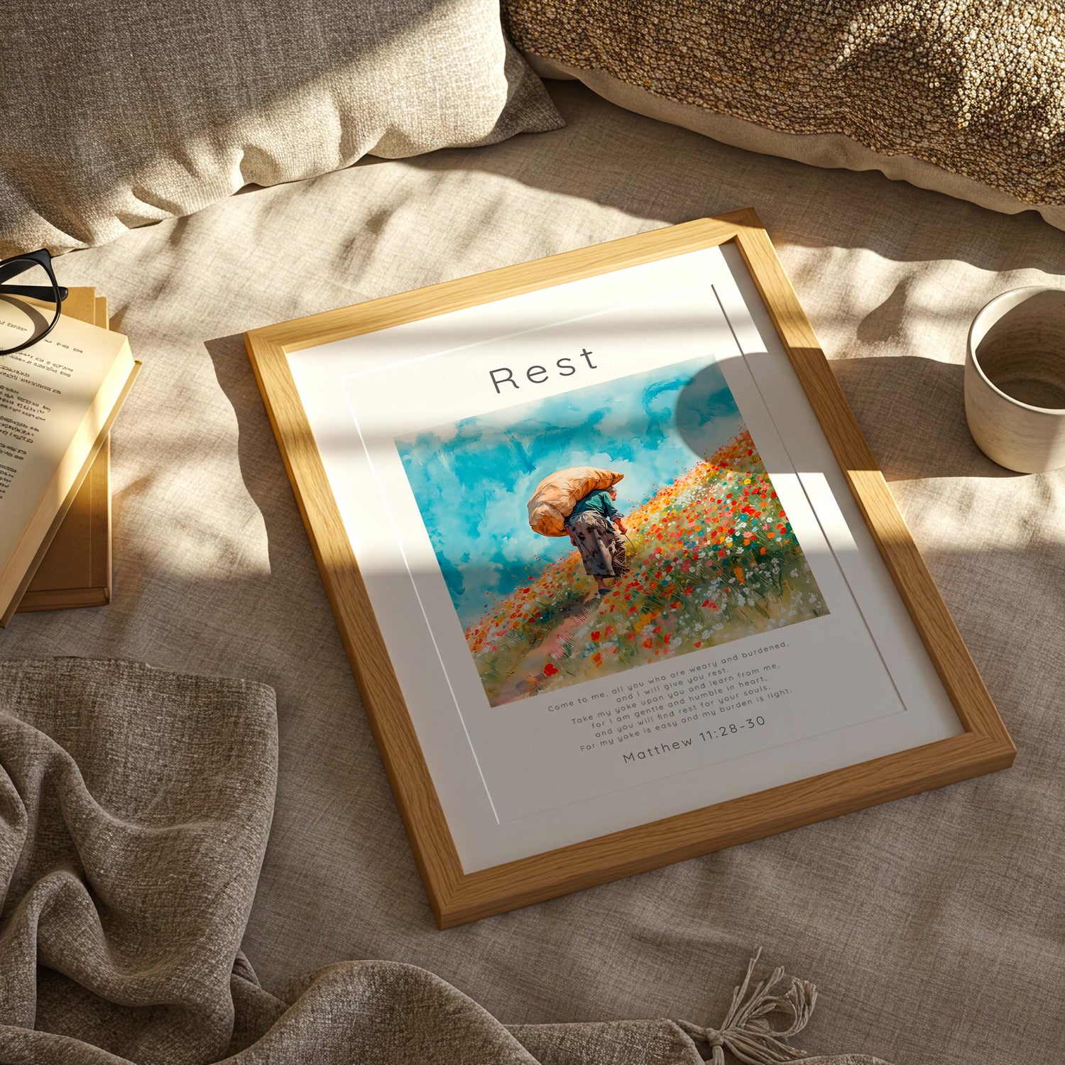 Come To Me And I Will Give You Rest Christian Wall Art Print - Matthew 11:28-30 is one of those passages that lands differently depending on where you are in life. When you're tired, weary, carrying more than feels manageable, these words from Jesus become incredibly personal: "Come to me, all you who are weary and burdened, and I will give you rest."