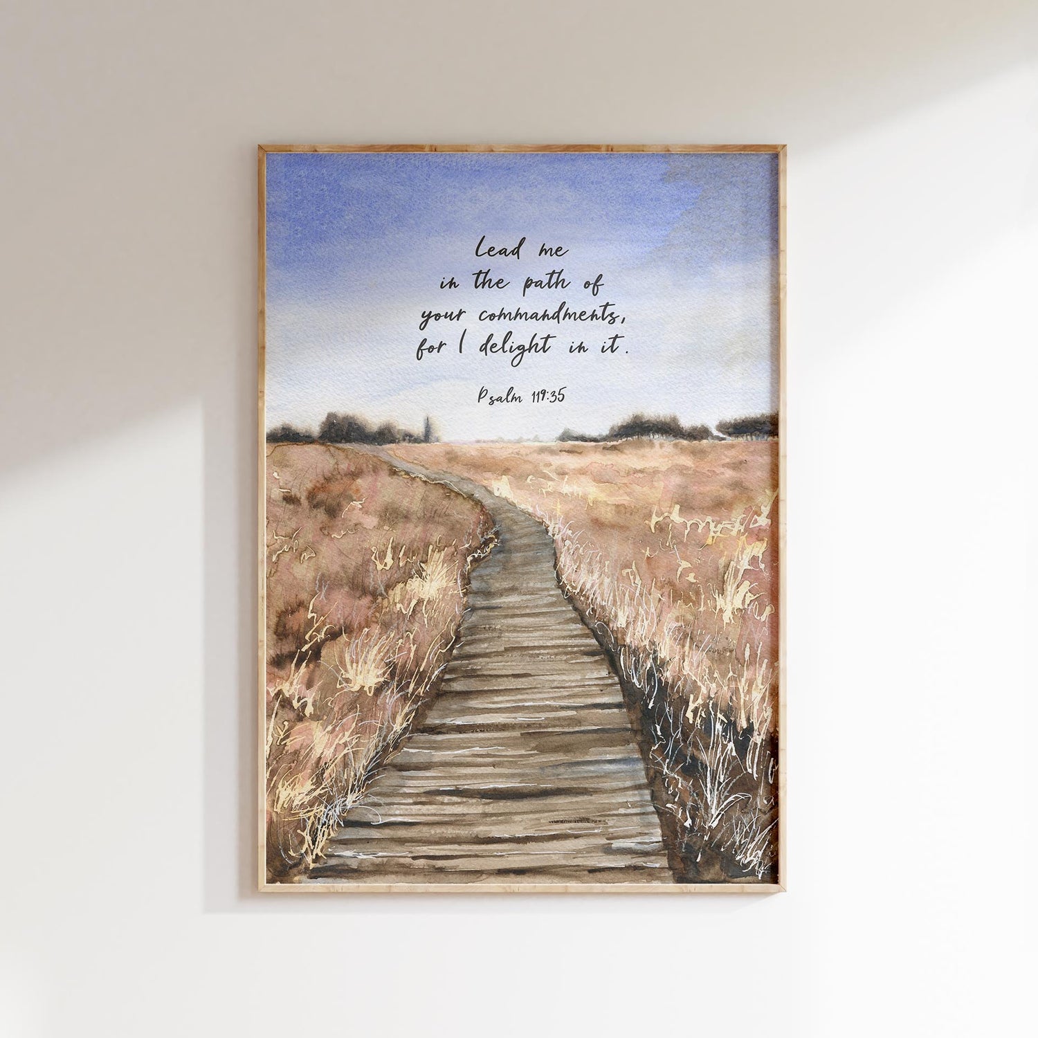 Lead Me In The Path Christian Wall Art Print, Psalm 119 35 Poster