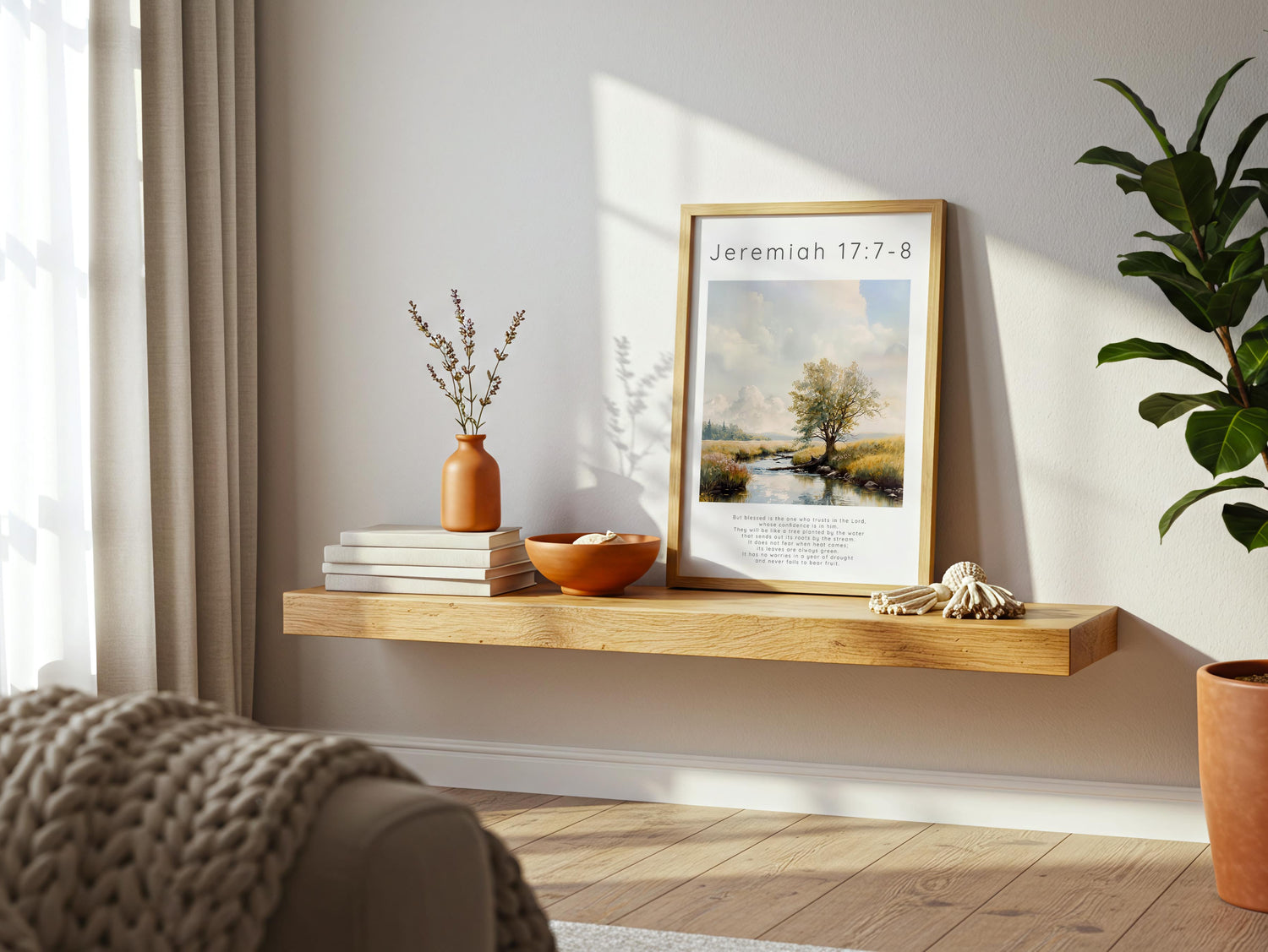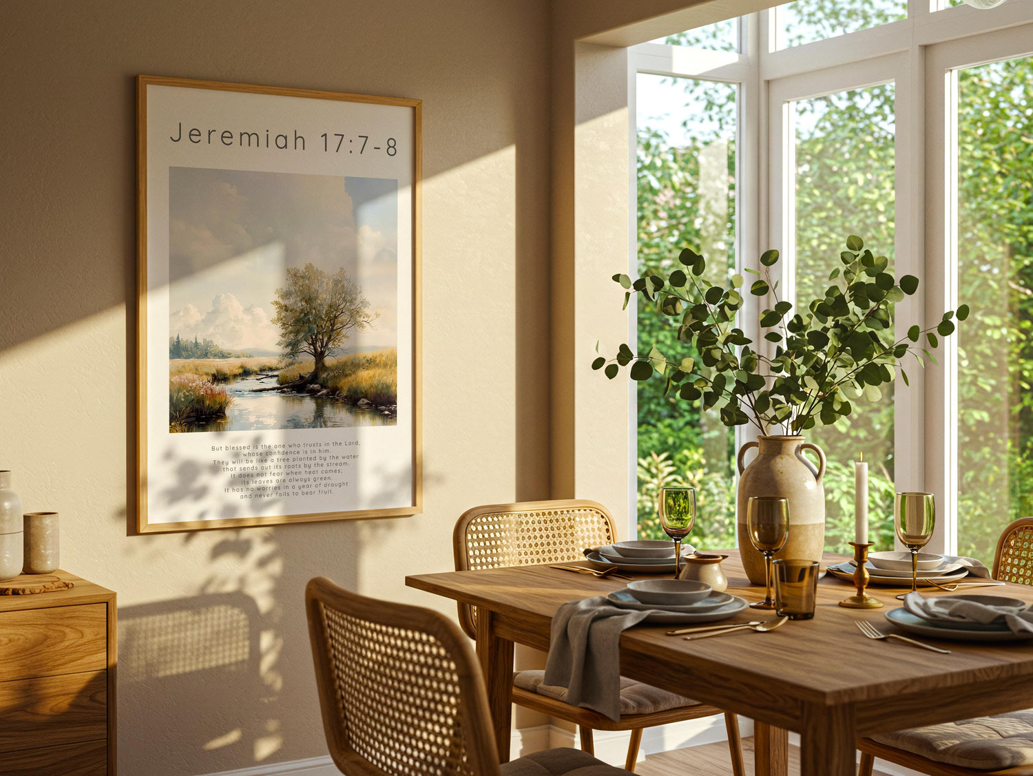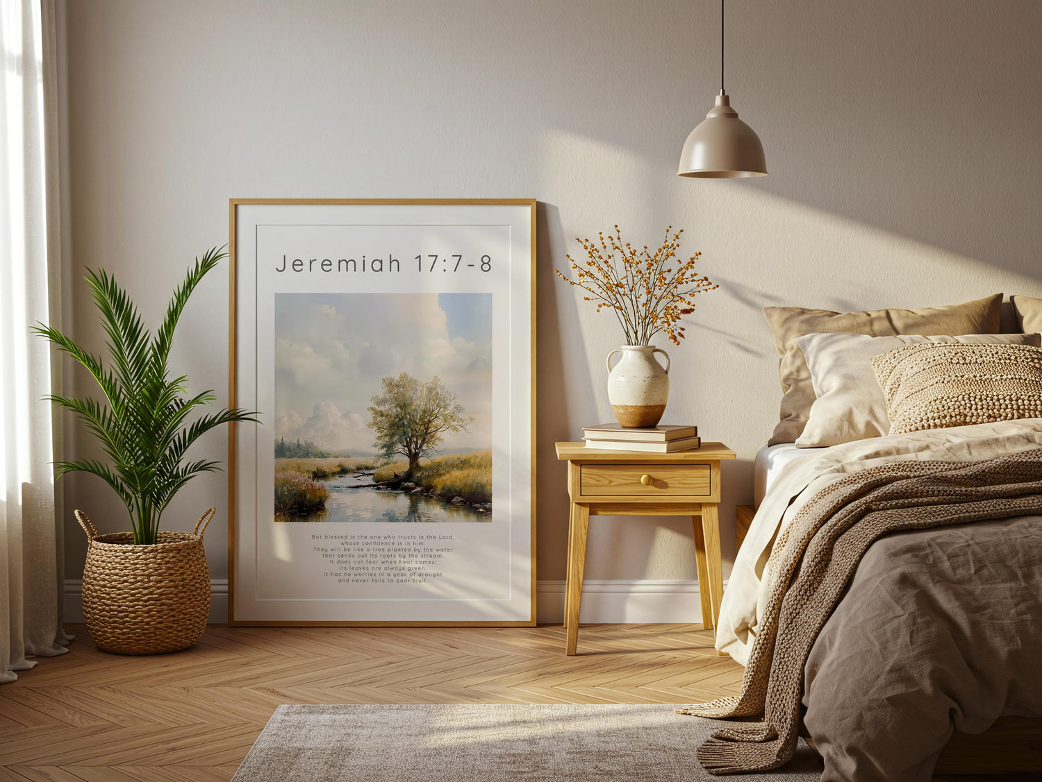 Blessed Is The One Who Trusts In The Lord Christian Wall Art Print - There’s something beautifully reassuring about the promise of steady faith — a life rooted in God’s love and nourished by His presence. This landscape print, Blessed Is The One Who Trusts In The Lord, captures that peace perfectly.